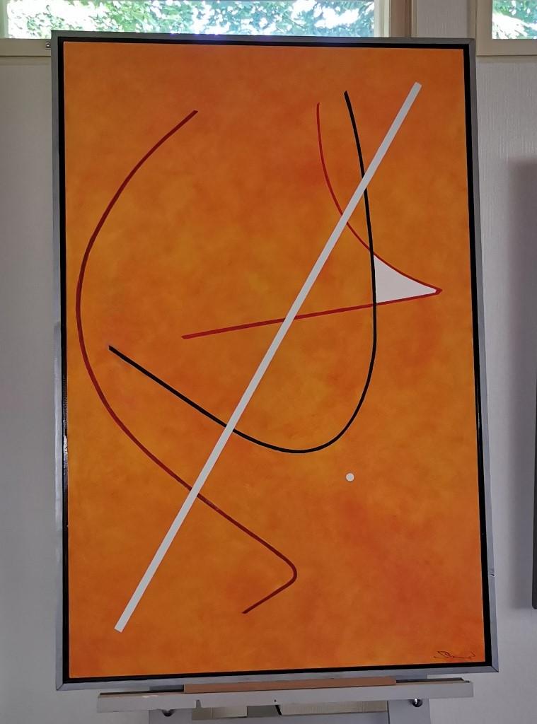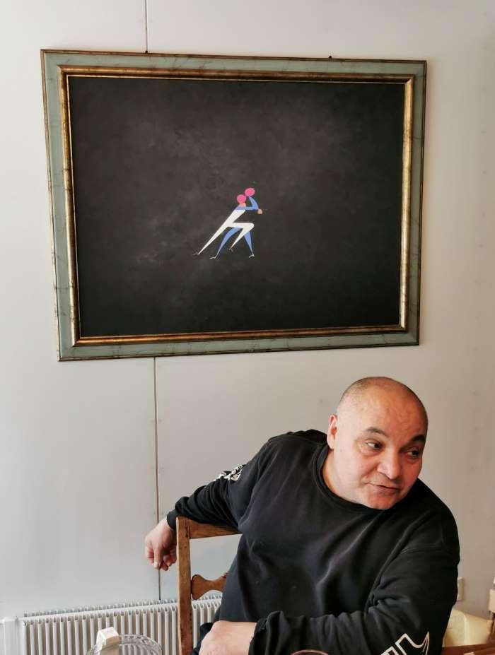 Yhdistyksen hallituksen jäsen Ahmed Ladarsi on sekä kuvataiteilija että palkittu ruokakirjailija. Taustalla maalaus nimeltä Tango.