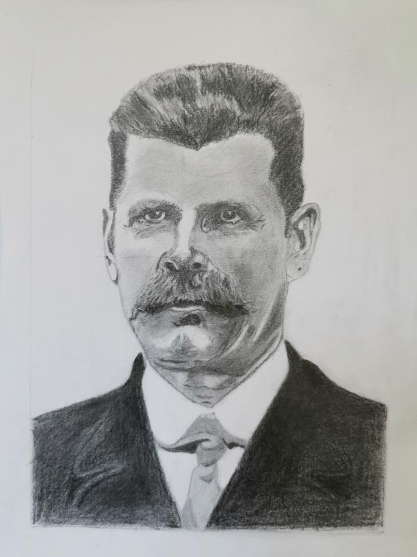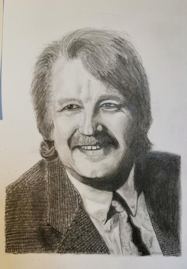 Yhdistyksen puheenjohtajan Keijo Vanhalan omakuva nuoremmilta vuosilta.